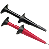 - Un par (rojo, negro) de pinzas en baño de níquel